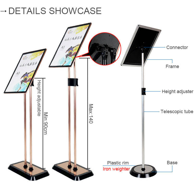 2023 couleur dorée support de sol A4 A3 A2 présentoir en métal affiche publicitaire présentoir extérieur