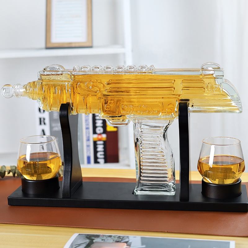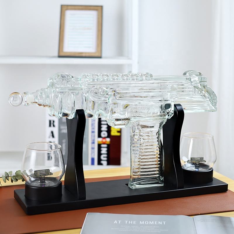 2023 chaud créatif fait à la main verre whisky carafes Ak47 pistolet forme verre bouteille de vin whisky carafe ensemble