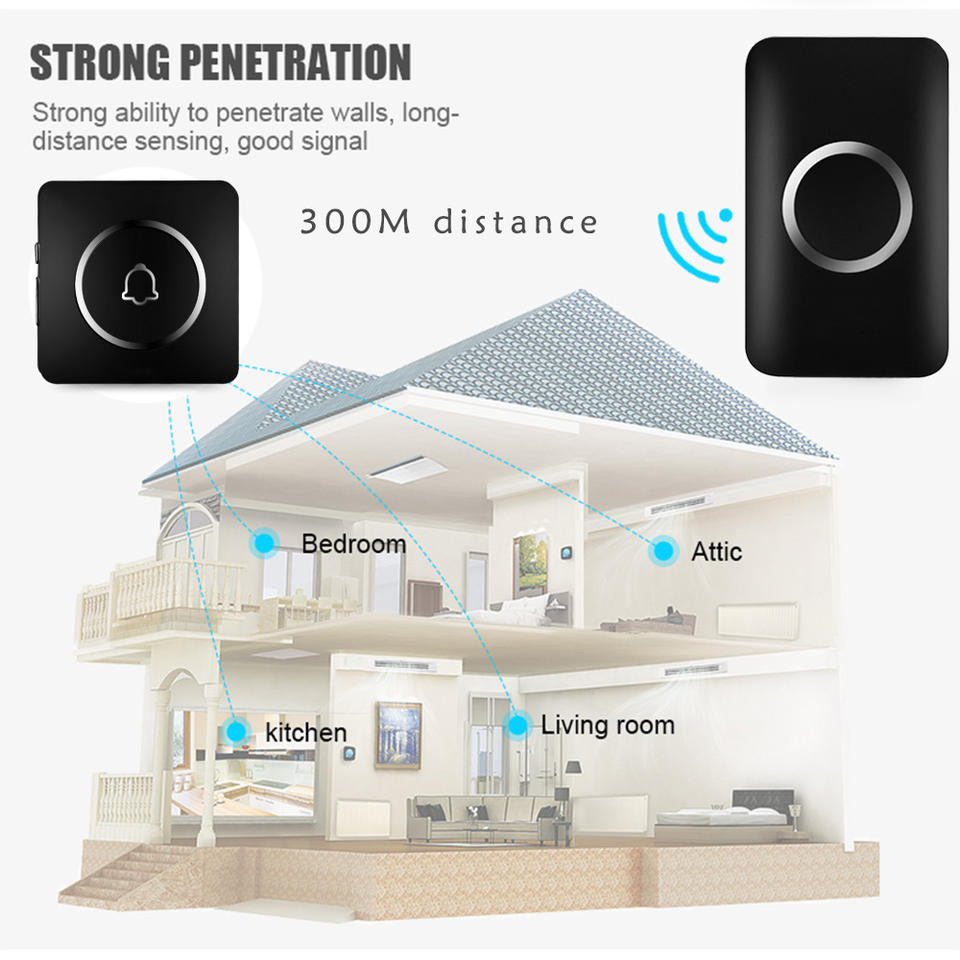 2023 prix d'usine chaud IP44 étanche 300m longue portée EU UK US Plug 60 sonneries batterie extérieure sans fil sonnette