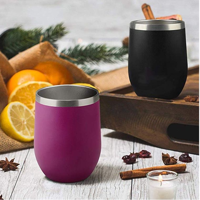2023 Hot New Products 12oz double wall stainless steel thermos wine glass with lid for keeping wine, coffee and tea
