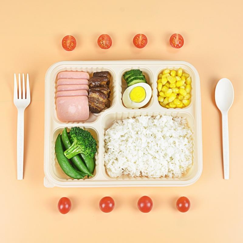 Boîte à lunch jetable en amidon de maïs biodégradable au micro-ondes de 2023 Offre Spéciale 4 compartiments simples chauffables à compartiments multiples