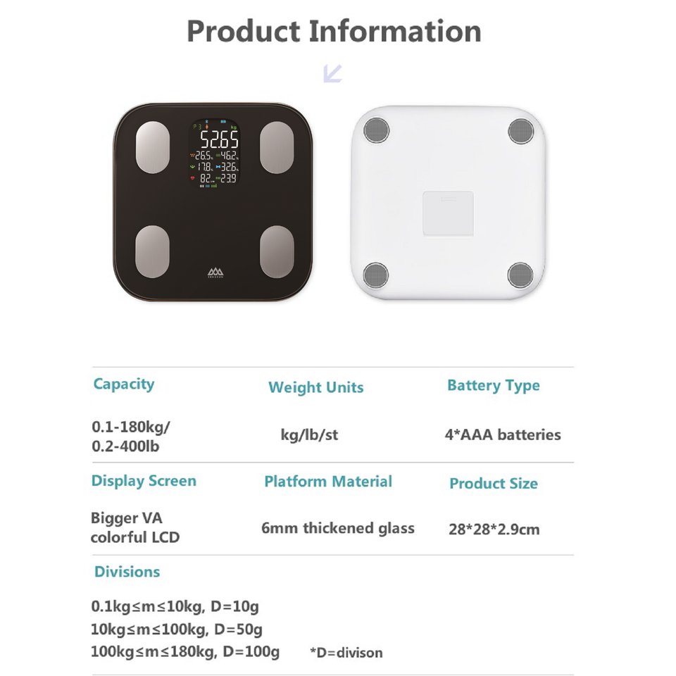 Product name:VA Screen Body Fat Weighing Scale