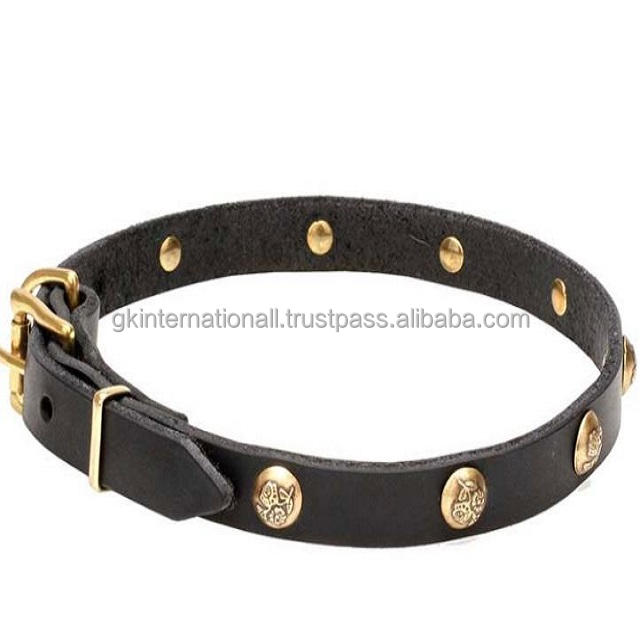 2023 dernière conception personnalisée collier de chien en cuir noir avec clous décoratifs en laiton fleuri et boucle sans rouille D anneau et rivets