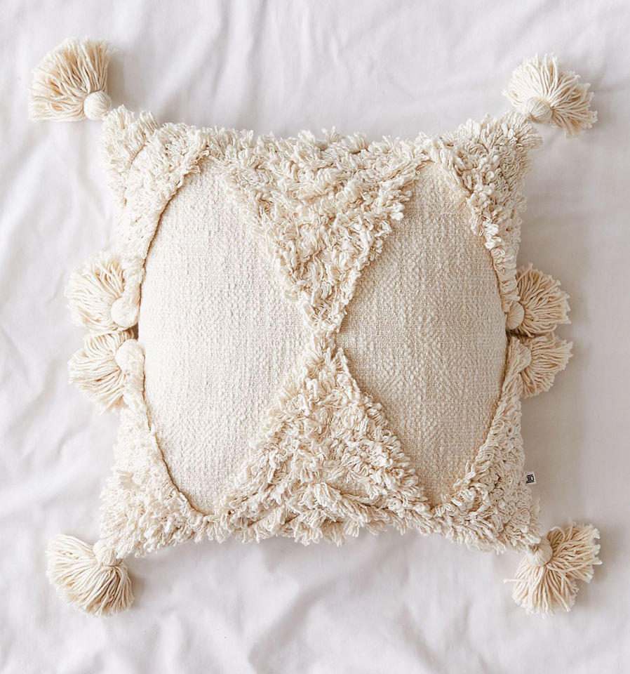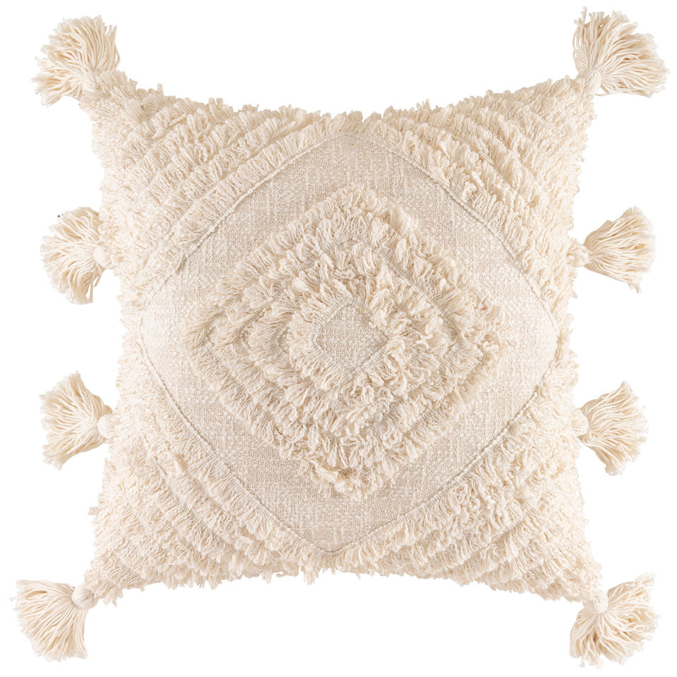 Housse de coussin en coton 100% faite à la main, style bohème, à franges et tuftée | Housse de coussin décorative marocaine texturée 18x18