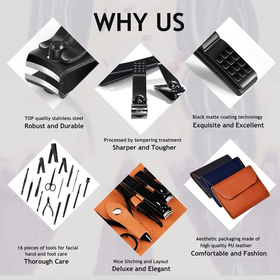 Kit de manucure professionnel en acier inoxydable, 15 pièces, 2023