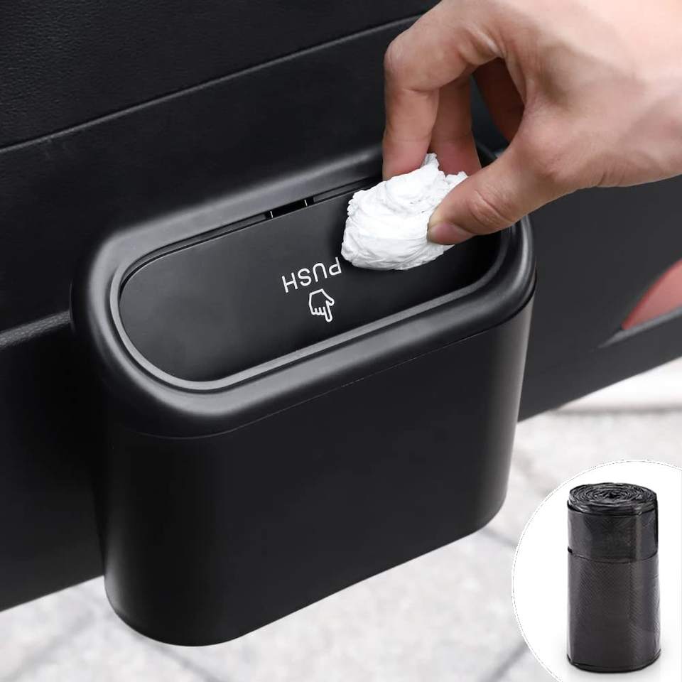 2023 Mini étanche Auto poubelle poubelle organisateur conteneur poubelle voiture poubelle avec couvercle un rouleau en plastique sac poubelle pour voiture