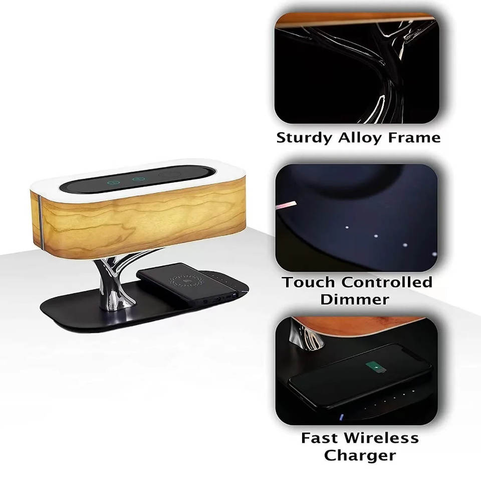 Lampe LED portable sans fil Bluetooth à commande tactile avec abat-jour en bois, design moderne 2023 pour la domotique intelligente