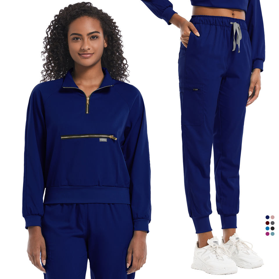2023 nouveauté prix usine médical sergé gommage uniforme manches longues haut fermeture éclair gommage hôpital infirmière uniforme