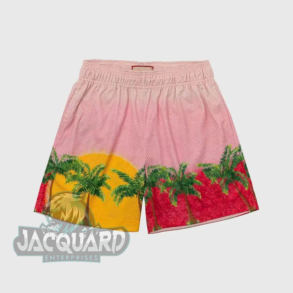 2023 nouveauté hommes léger maille été Sport Shorts 100% Polyester coton Vintage plage motif solide Anti-rides