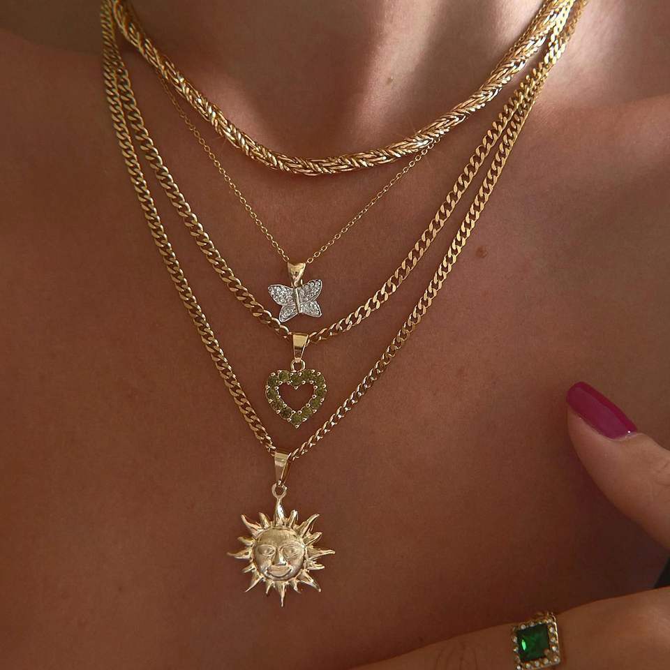 2023 nouveau collier minimaliste délicat CZ Hamsa main/amour/diamant papillon/dents/grand soleil/pendentif zircone collier