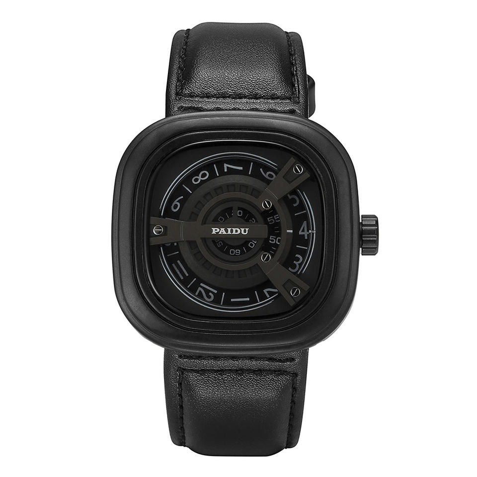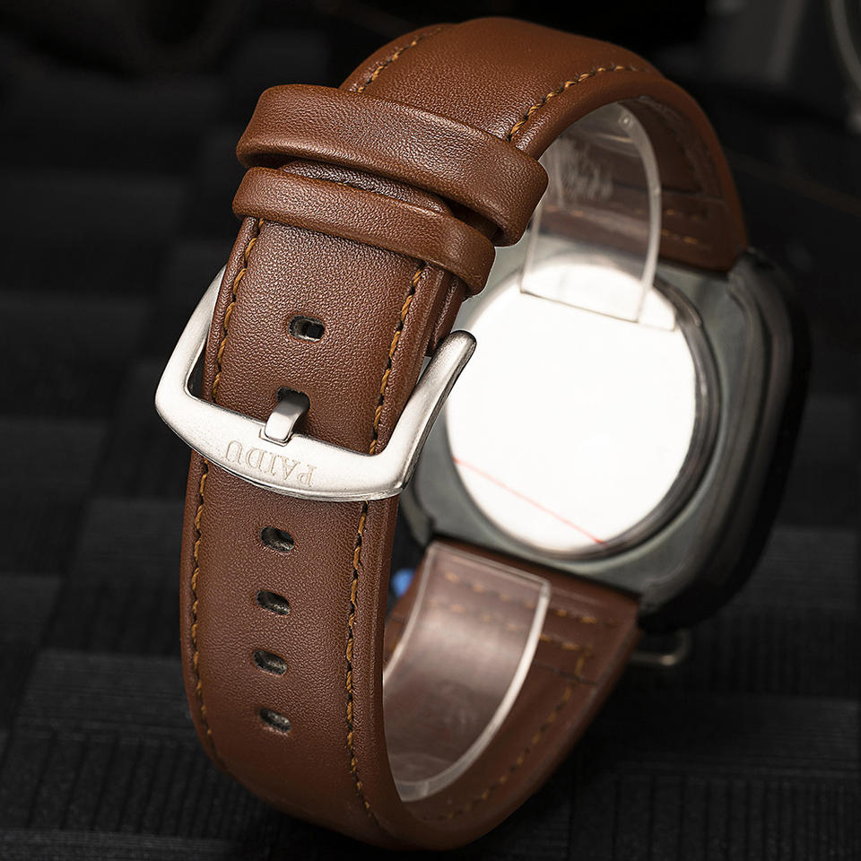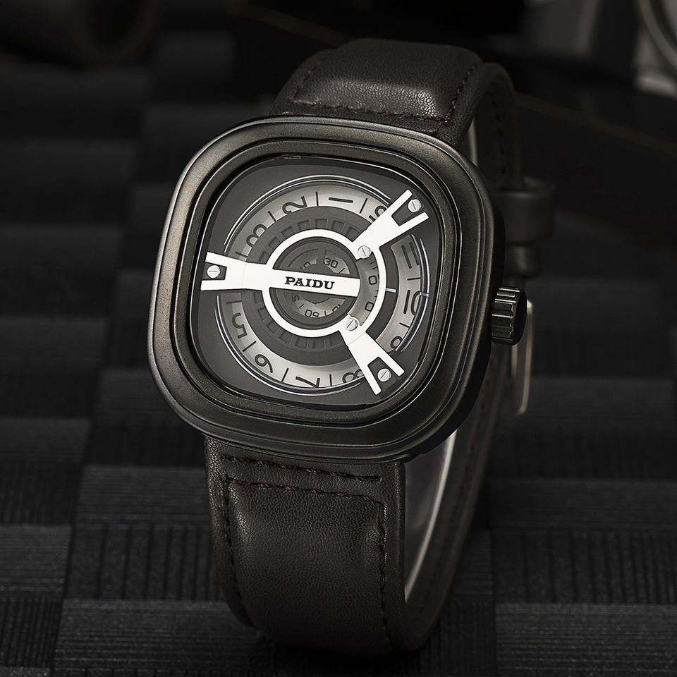 Montre à quartz pour homme décontractée avec bracelet en cuir véritable, nouvelle conception 2023, cadran rond à aiguilles creuses
