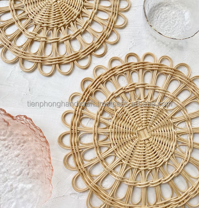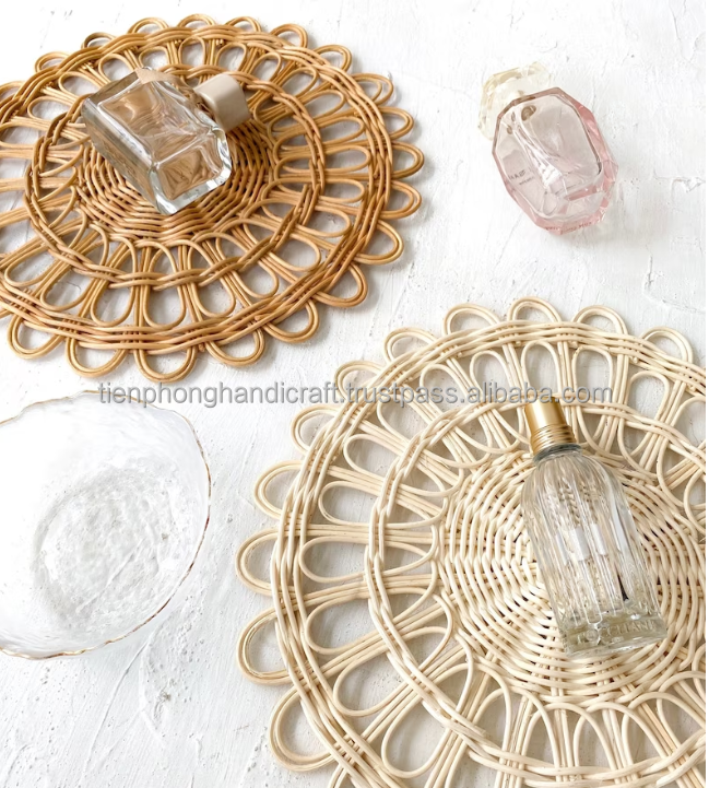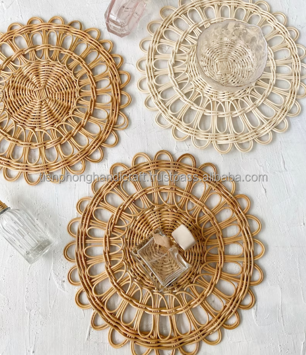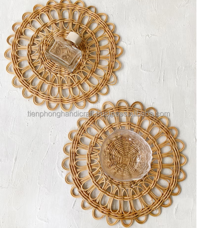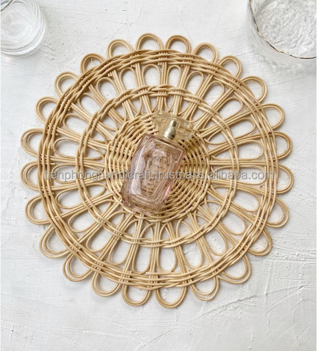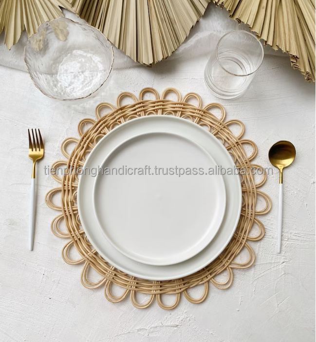 2023 nouveau napperon en rotin en osier de conception, assiette de chargeur en rotin, décor à la maison fabriqué au Vietnam