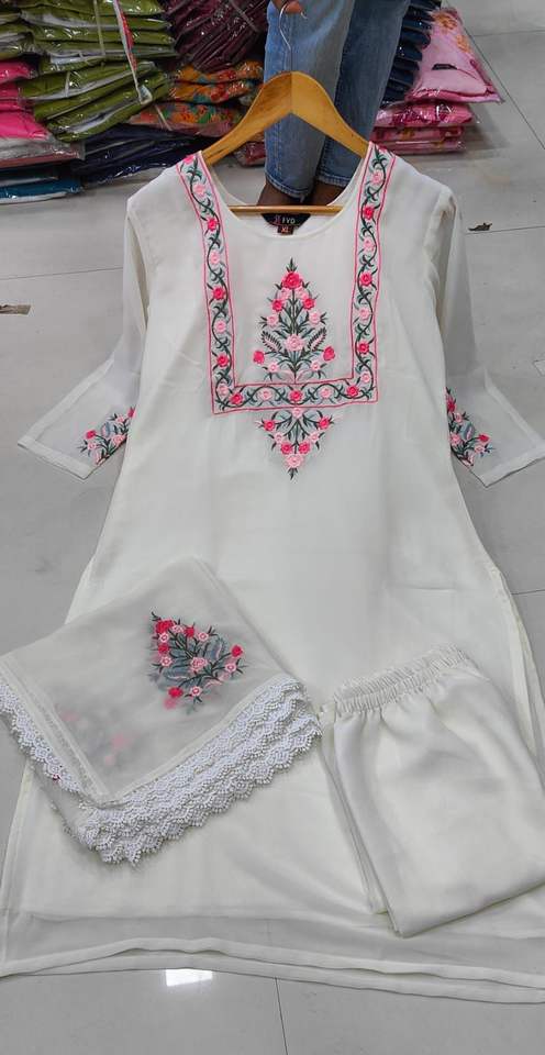 Travail:Georgette avec travail de broderie