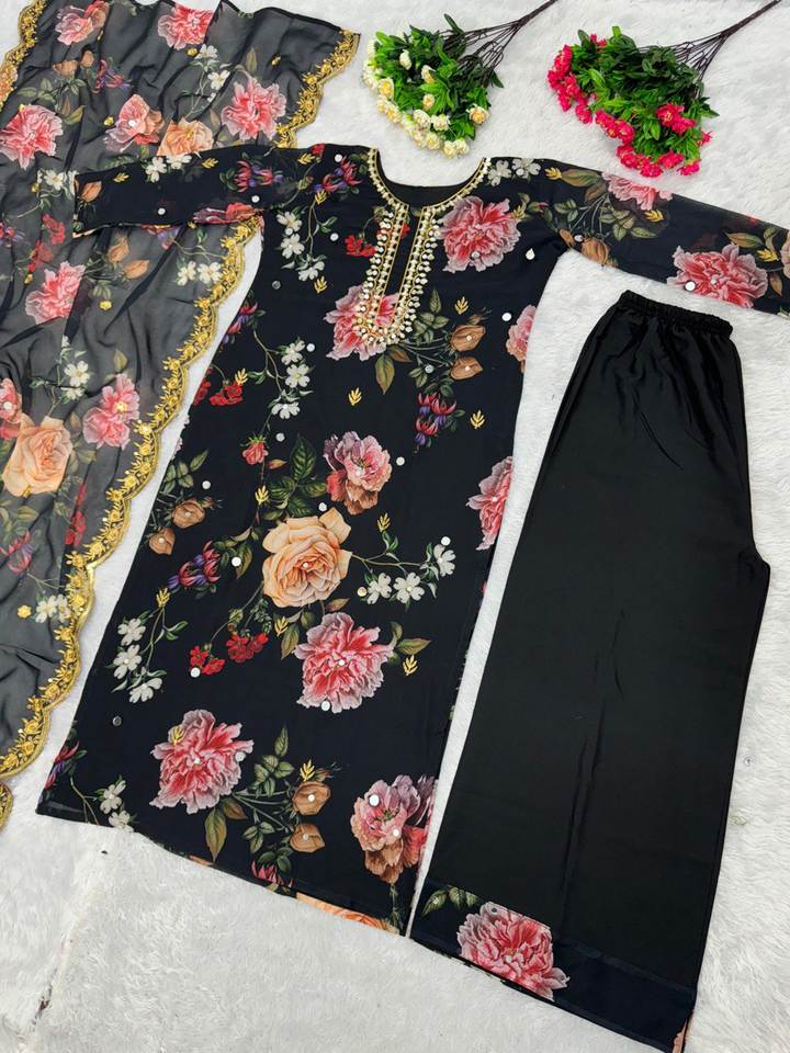 Work:DIGITAL PRINT HEAVY EMBROIDERY SEQUENCE WORK WITH MIRROR HAND WORK