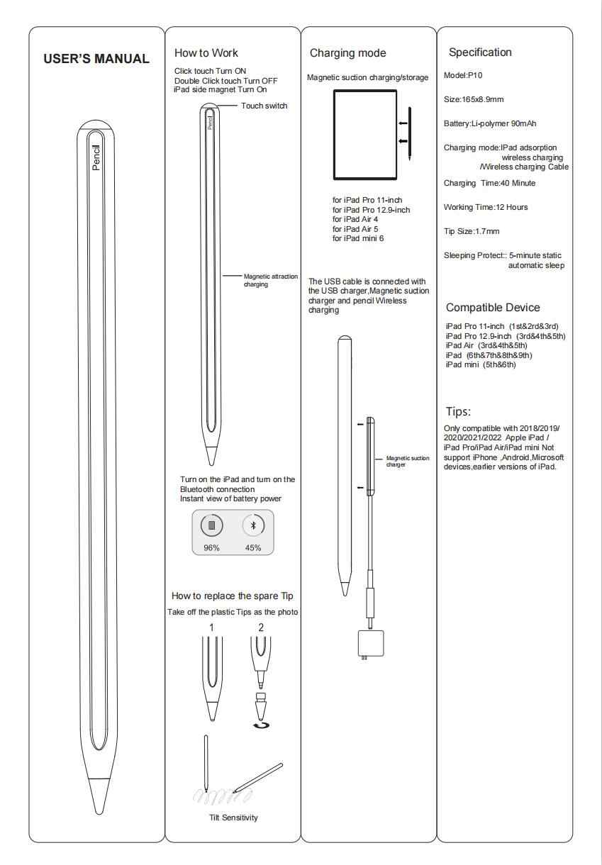 Palm rejet + tilt + affichage de la batterie + magnétique sans fil de charge