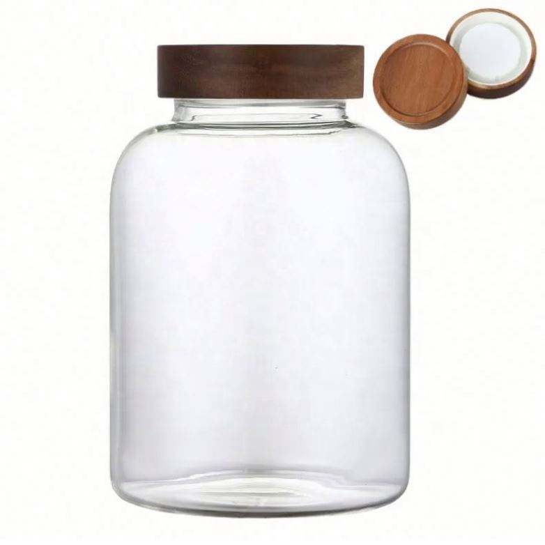 Nouveau style 2023 : Récipient en verre hermétique pour aliments et vin de cuisine avec couvercle à vis en bois