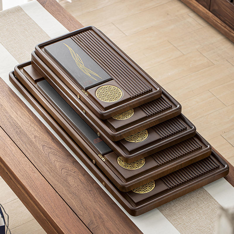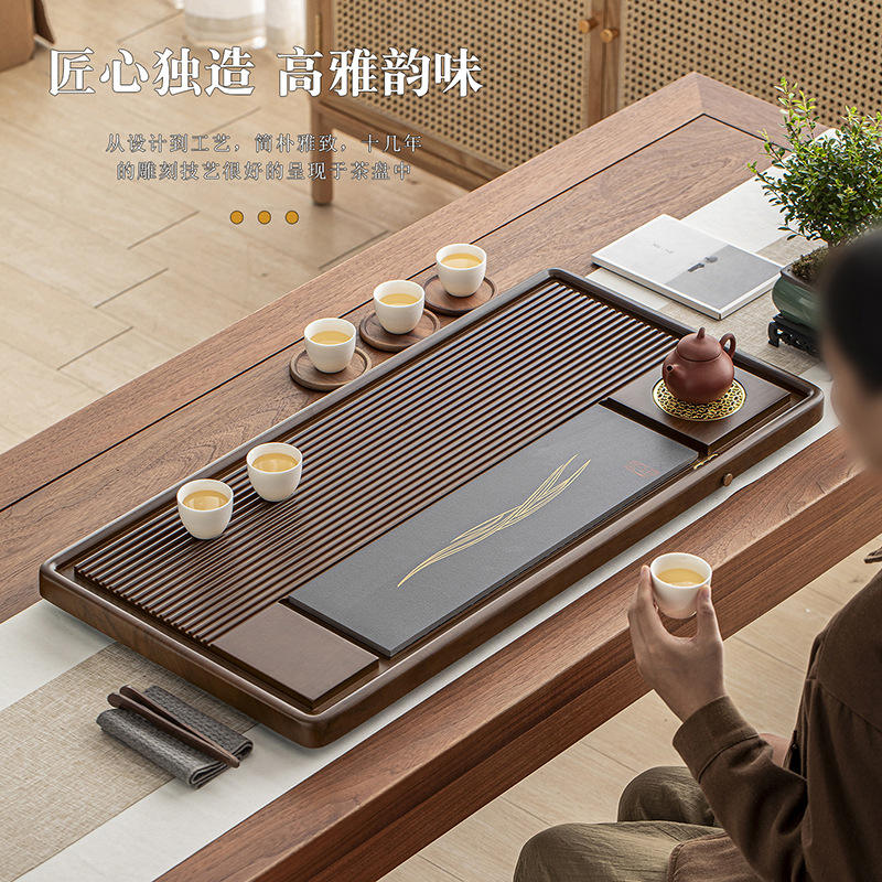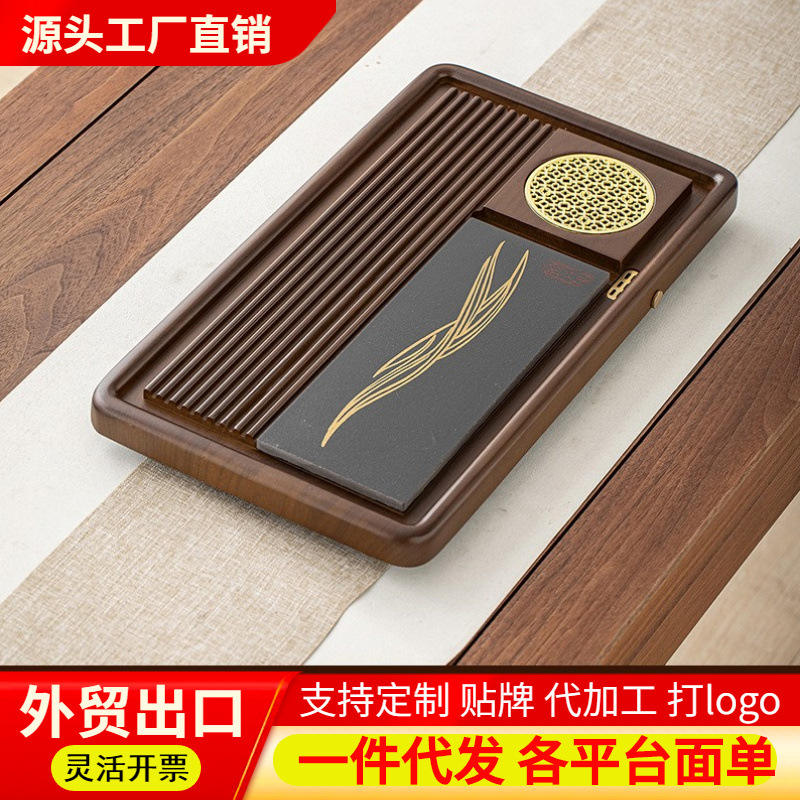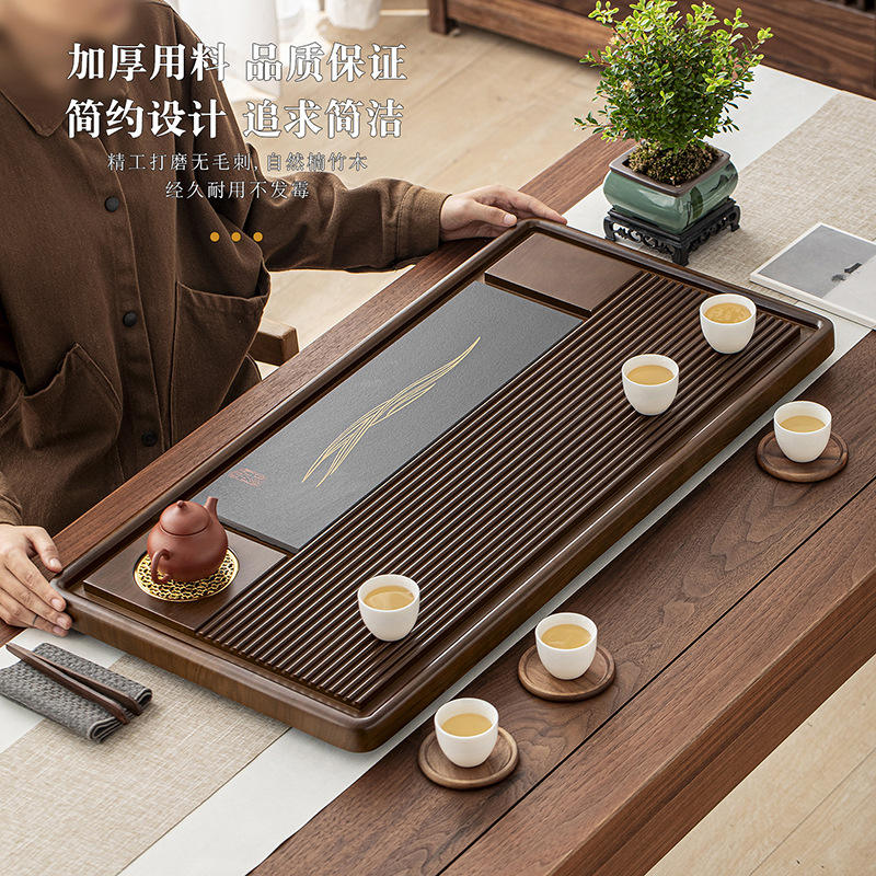 Nouveau Plateau à Thé Domestique 2023 avec Drainage, Table de Cérémonie du Thé en Pierre Noire, Plateau de Service pour Thé