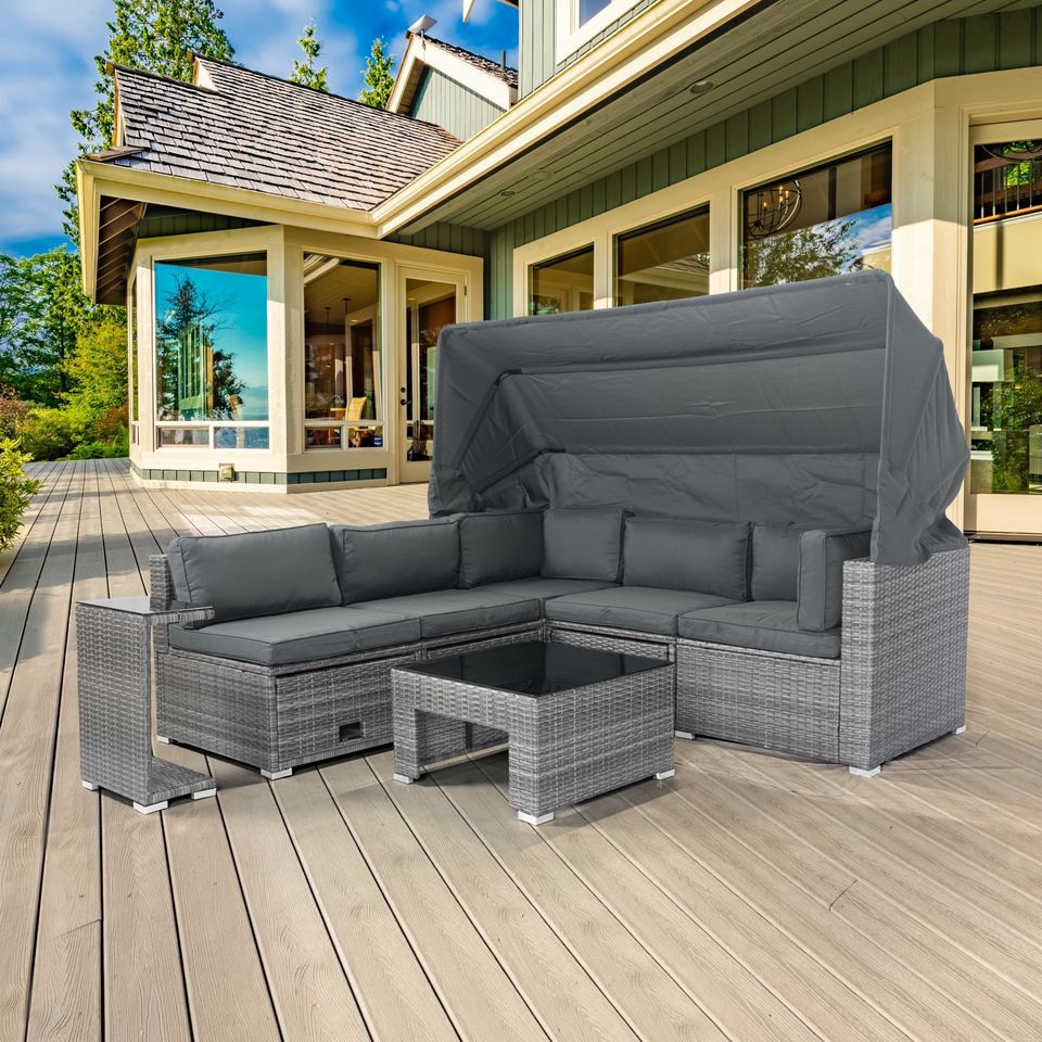 2023 PE Rattan Furniture Premium L Shape Lounge Corner Set with 5 Seater 100% Waterproof Polyester Cushion for Apartment Villa