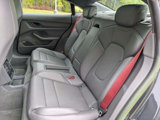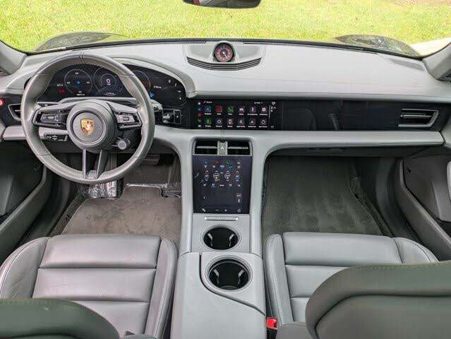 Porsche Taycan berline 2023, propulsion arrière, couple de 400-500 Nm, 300-400 ch, transmission automatique, toit ouvrant panoramique, sièges en cuir