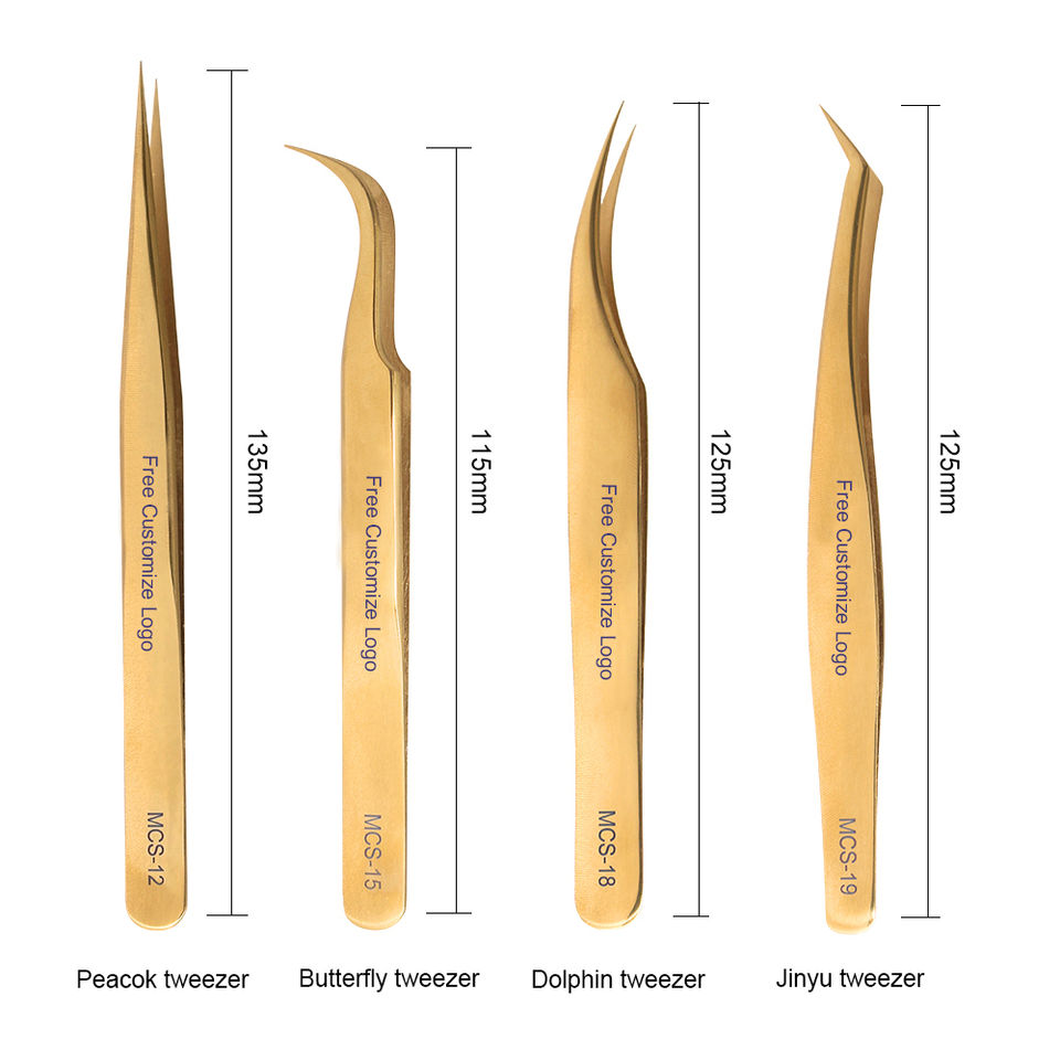 2023 Kit de pincettes d'extension de cils en acier inoxydable professionnel de haute qualité applicateur doré avec embouts en fibre pointue