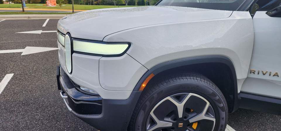 Rivian R1S Adventure Edition 2023, Quad-Motor AWD, automatique, intérieur clair, sièges en cuir noir montagne, pneus R19, break gauche