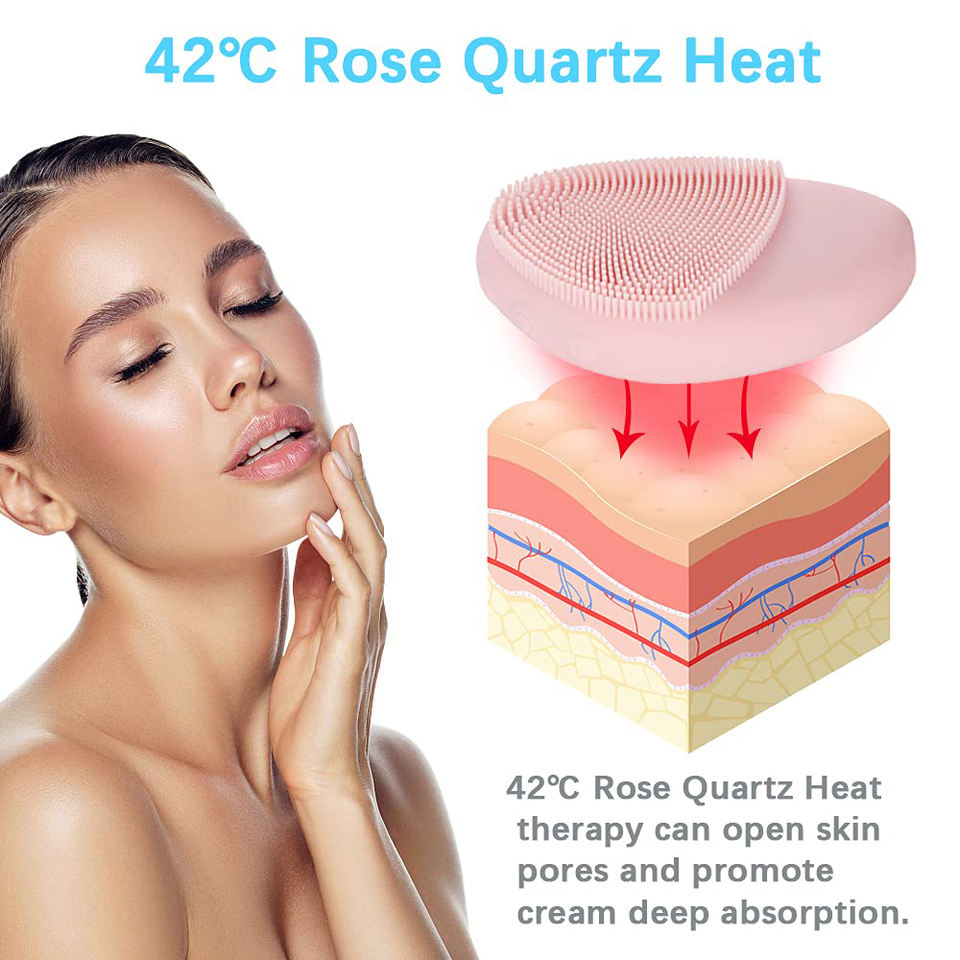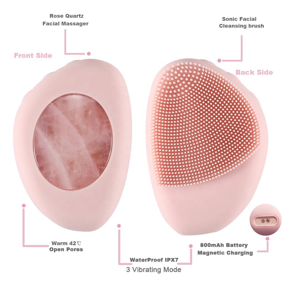 2023 Skin Care Deep Cleansing Electric Sonic Heat Face Massager Anti Aging Natural Rose Quartz Facial Cleansing Brush
