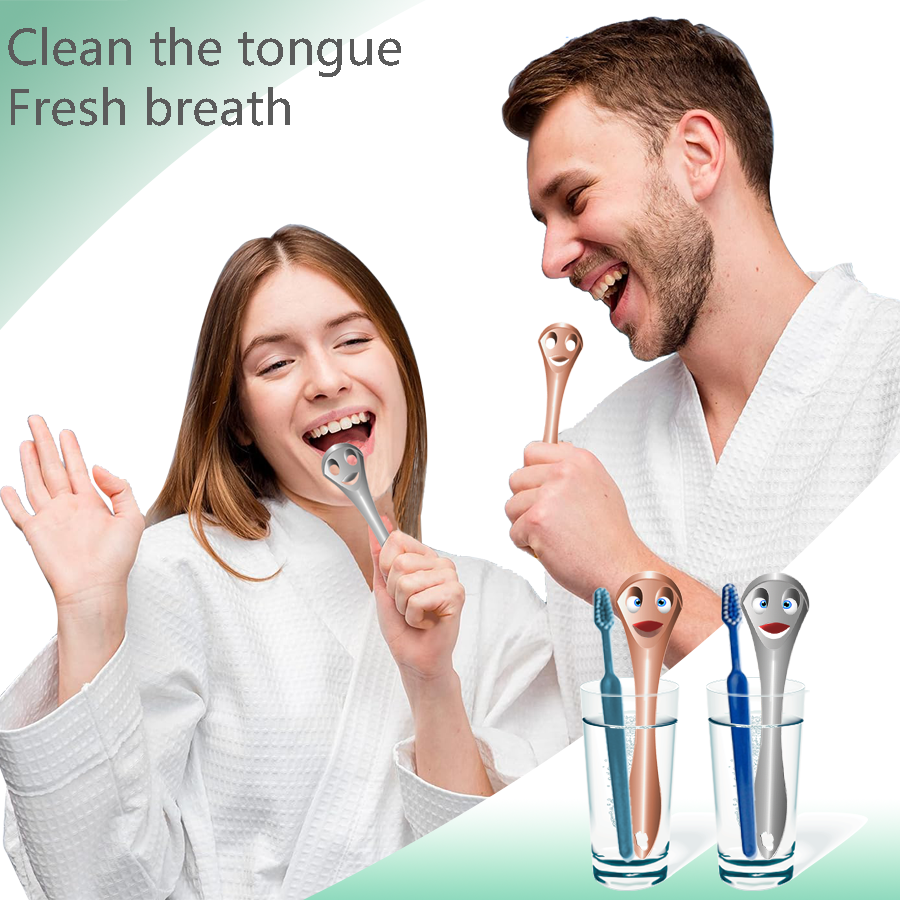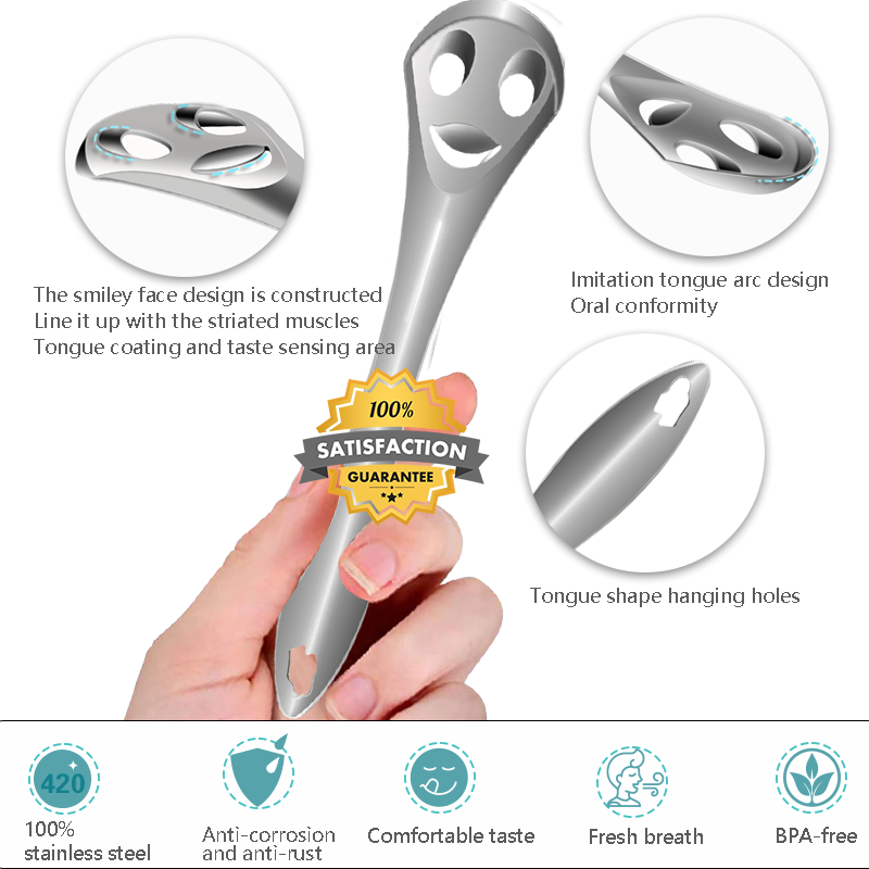 2023 Visage souriant 100% grattoir à langue en acier inoxydable outil de nettoyage oral, dissolvant d'odeurs orales, langue propre