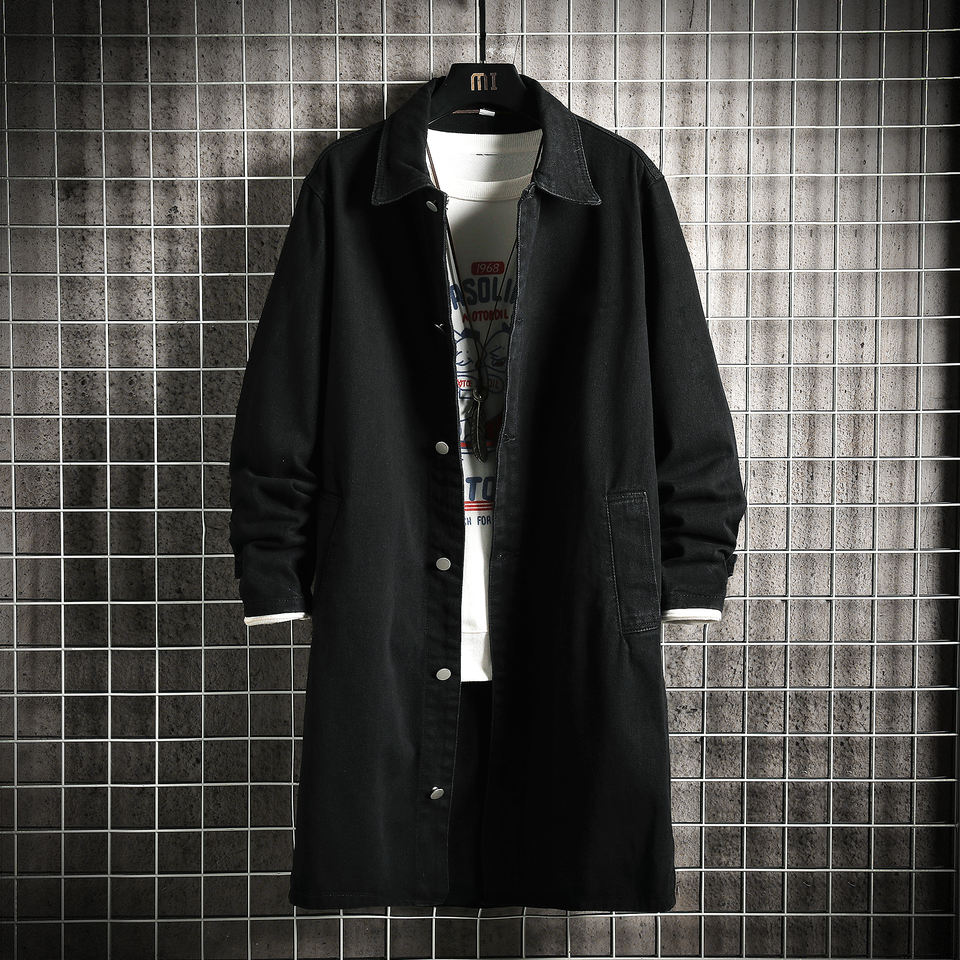 Veste en jean mi-longue ample de style coréen pour homme, printemps 2023, avec col rabattu