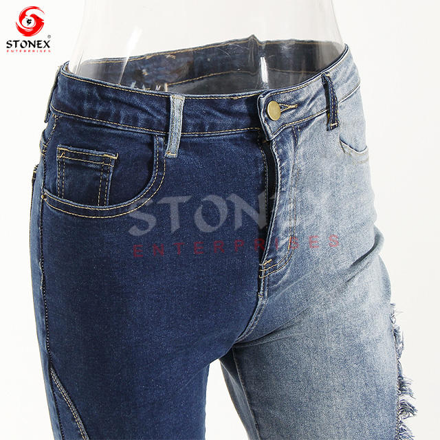 2023 printemps nouveauté taille haute droite irrégulière Patchwork femmes cloche-bas pantalon dernière conception dames Denim jean