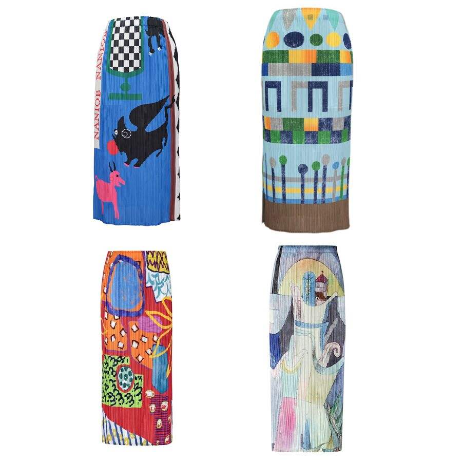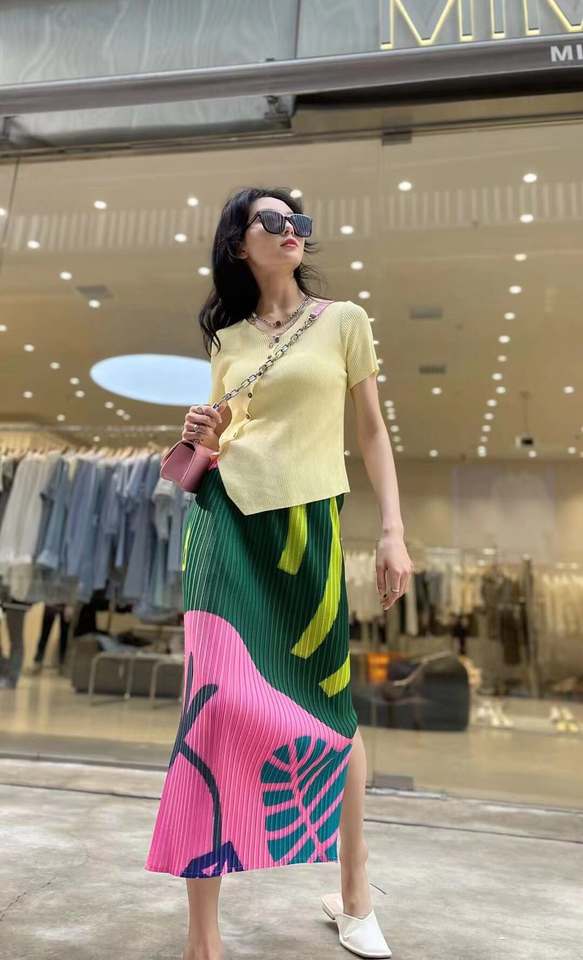 2023 Summer Couston Hot Sale Pleated Miyake High Waist Pleated Mid Long Slit Women's Skirt Straight Tube Skirt