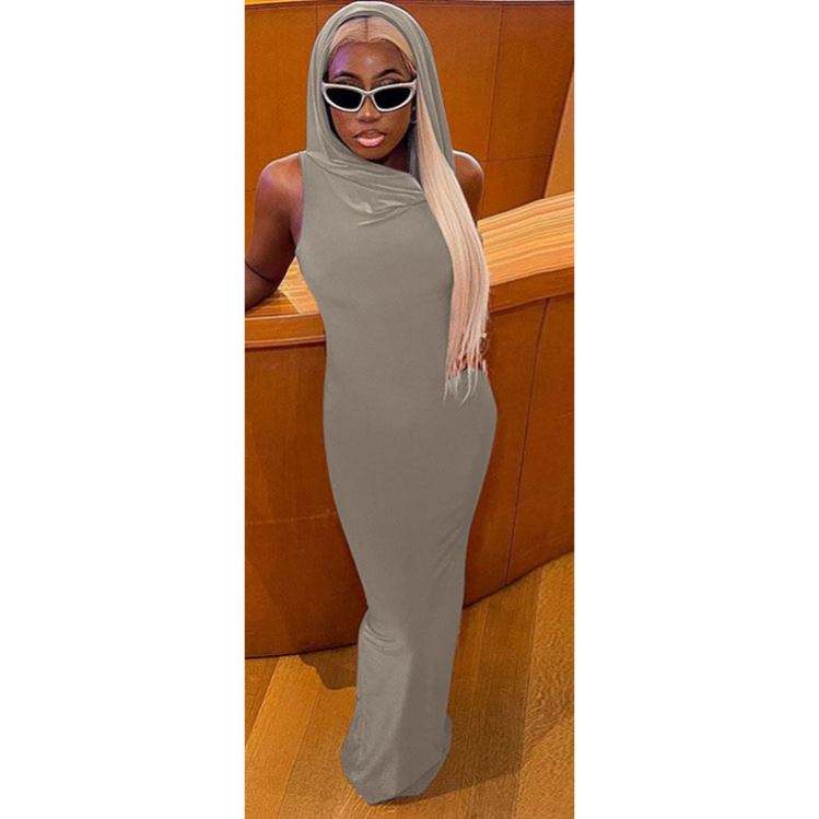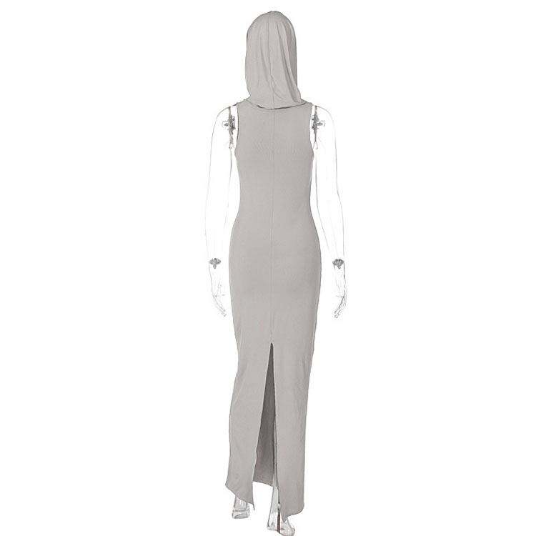 2023 été nouvelle mode couleur unie à capuche dos fente sans manches longue robe