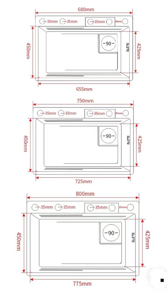600/680/750/800*460*220mm/24/27,2/30/32*18,4*8,8 pouces