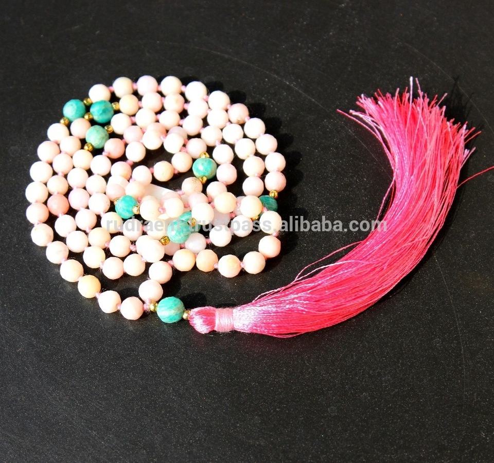 2023 tendance naturel rose opale Amazonite 108 perles de prière chapelet Long gland Mala religieux diamant perle fêtes cadeaux
