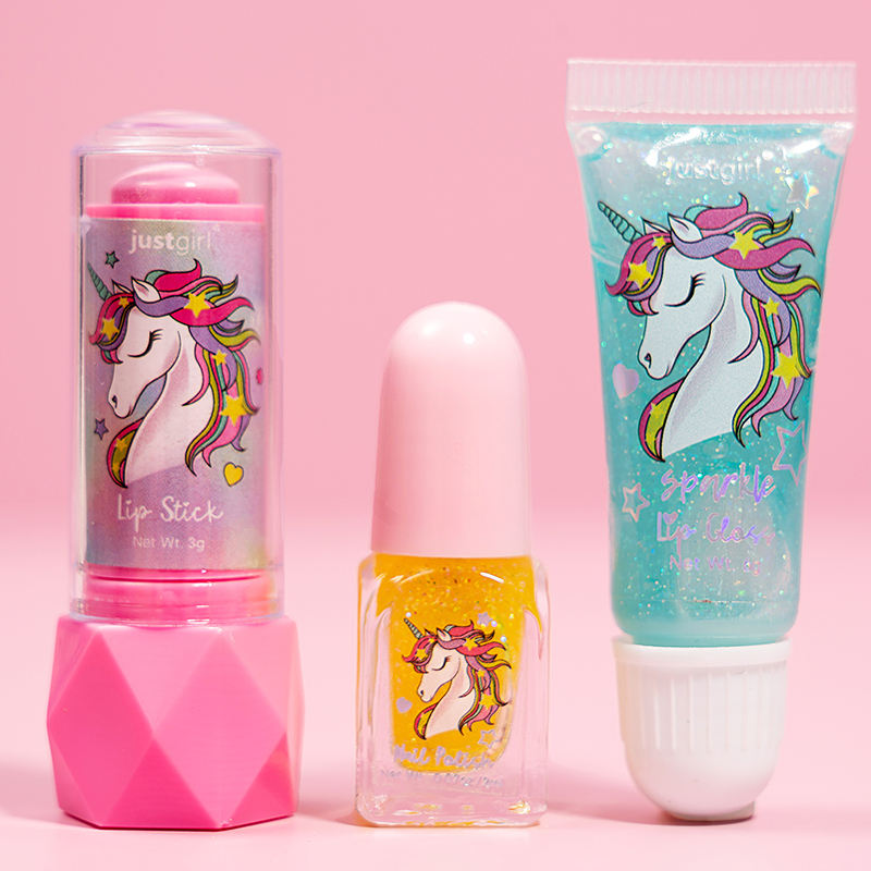 2023 petite licorne maquillage Kit POP sac kit enfants maquillage cadeau ensembles enfants amical brillant à lèvres baume à lèvres