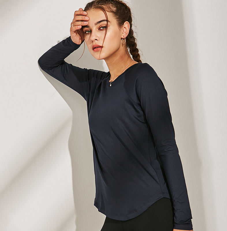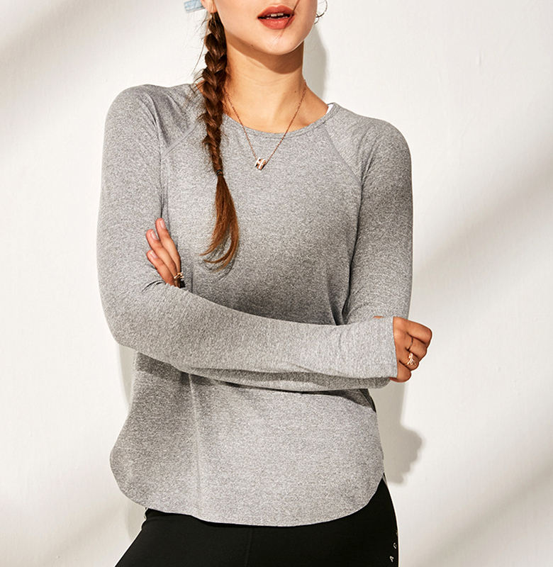2023 personnalisé couleur unie femmes à manches longues coton respirant T-Shirt femmes vêtements de Fitness T-Shirt