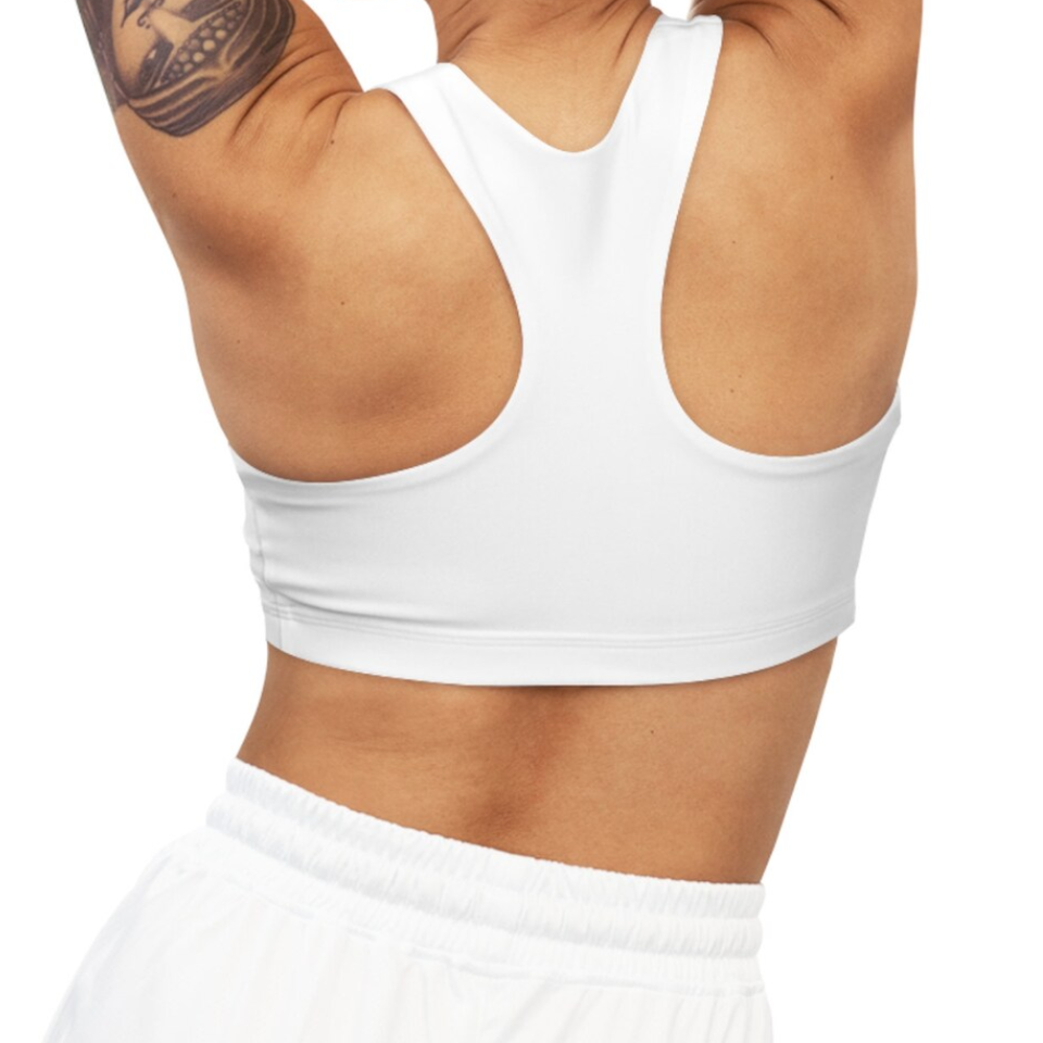 2024-25 sans couture Logo personnalisé dos croisé blanc Yoga entraînement haut court soutien-gorge de sport dos nu haut pour rembourré femmes ensemble