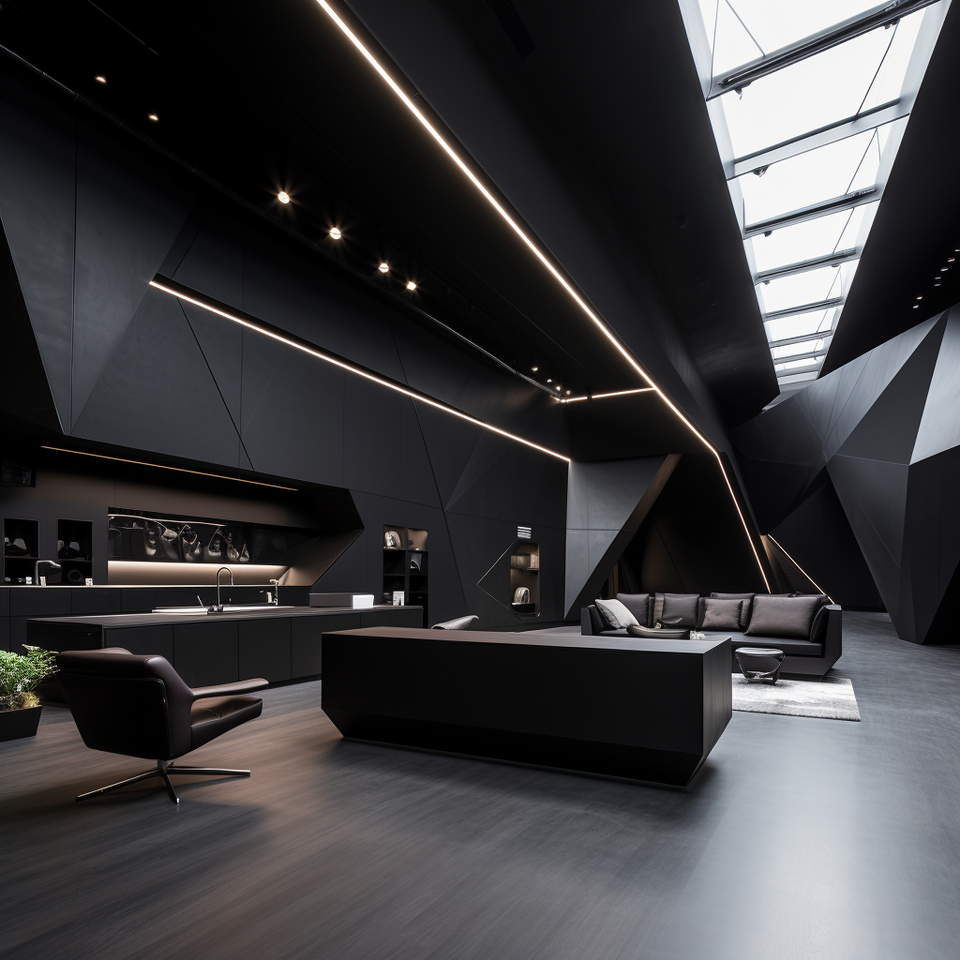 2024 AI Concept Design pour Ultimate Black Cabinet Display Dessins de rendu 3D pour les services d'intérieur de meubles de maison de cuisine