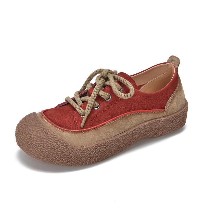 2024 automne Collection nouveau Style britannique en cuir véritable chaussures plates pour femmes orteil en cuir souple couleur correspondant à lacets décontracté