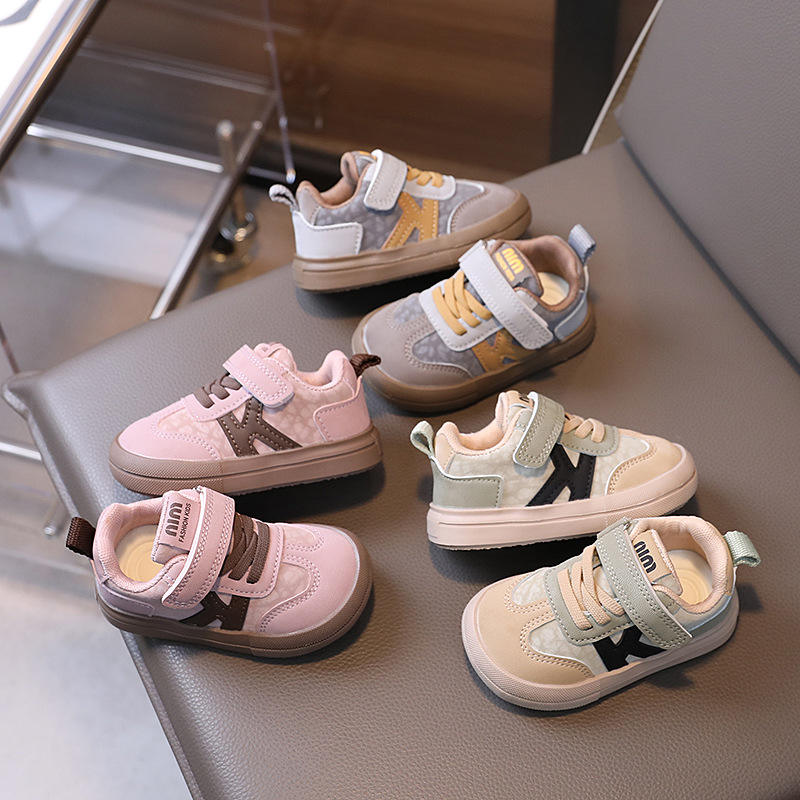 2024 Autumn New Baby Toddler Sports Shoes Breathable Soft Sole Casual Sneakers Velcro Closure Low-top Upper Color Matching for