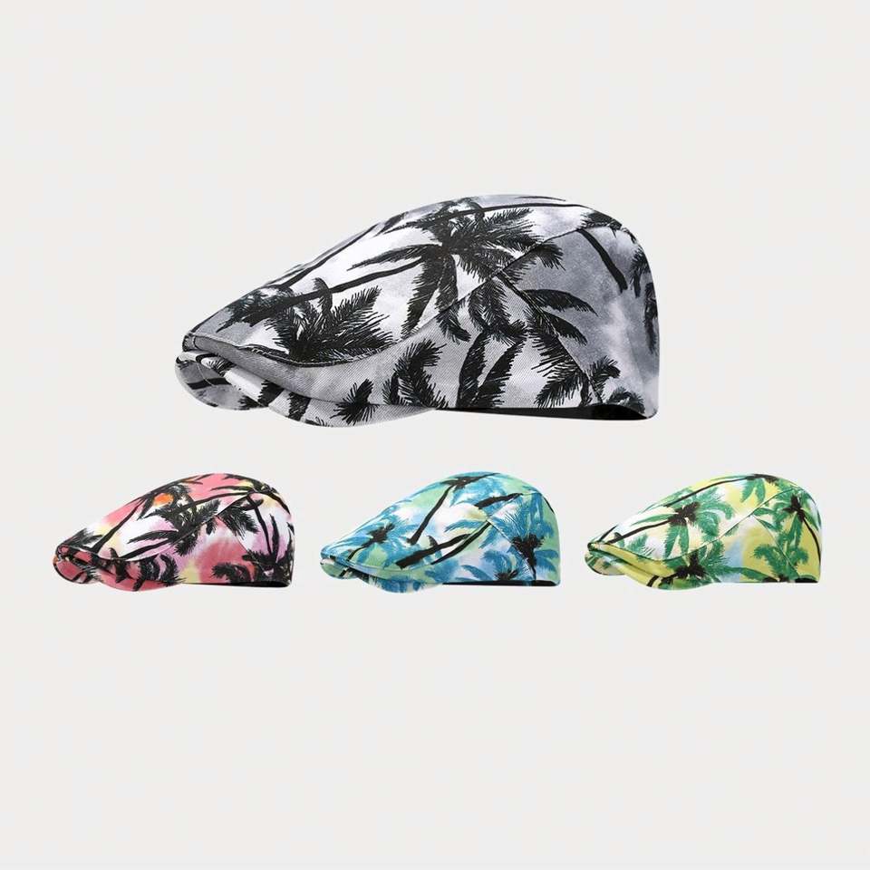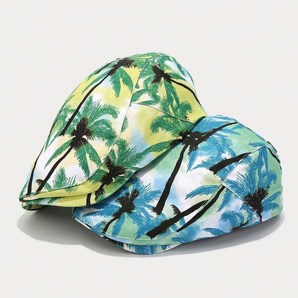 Casquette imprimée motif cocotier tropical automne 2024 pour homme et femme, chapeau béret vintage à bord court pour l'extérieur