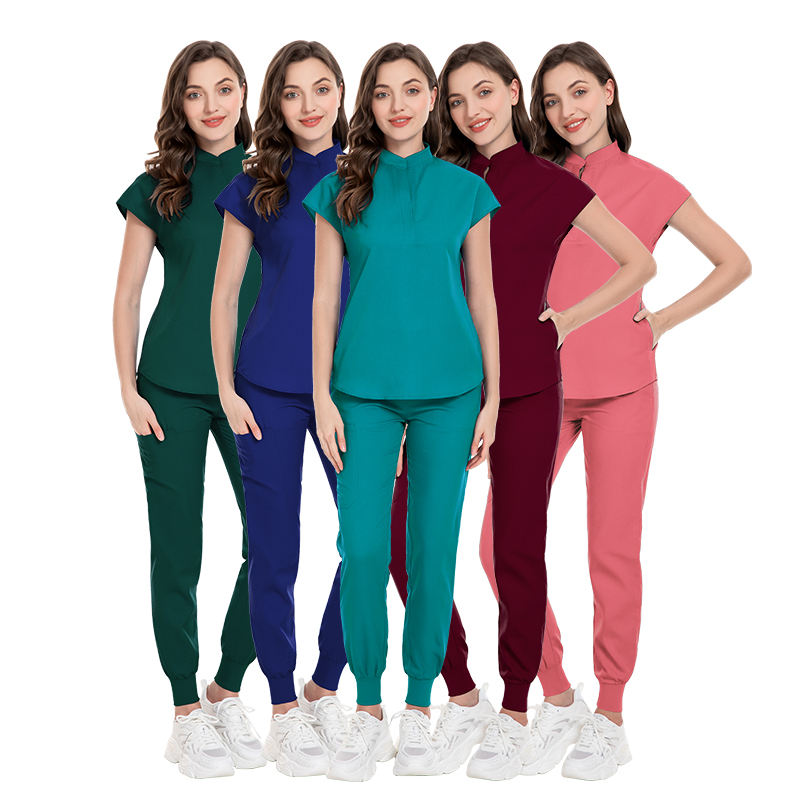 2024 beauté Design à la mode marque privée personnalisé travail Stretch infirmière hauts ensembles médical femmes gommage ensemble