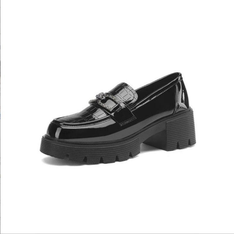 2024 British Style Women's Patent Leather Loafers Small Velvet Flats Thick Soles Hot-Selling for Spring Winter Plus Seasons