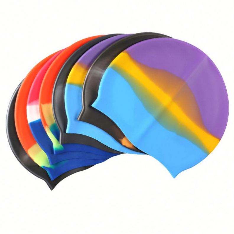 2024 pas cher écologique Silicone bonnets de bain logo personnalisé chapeaux de natation coloré imprimé bas quantité minimale de commande poly-sac paquet