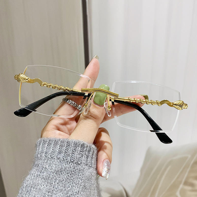 2024 Chic sans monture Rectangle lunettes de soleil mode Vintage dégradé coupe lentille nuances lunettes à la mode serpent forme jambes lunettes de soleil