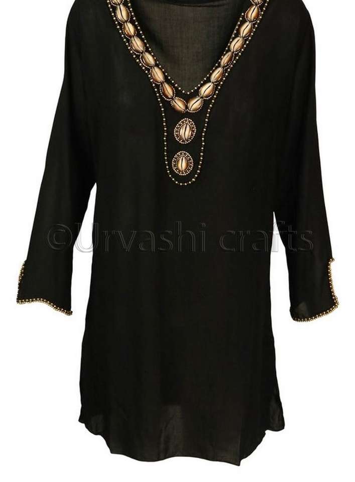 2024 classique Collection Sexy perlé à la main travail noir à manches longues femmes fête porter tunique hauts vêtements de fête hauts