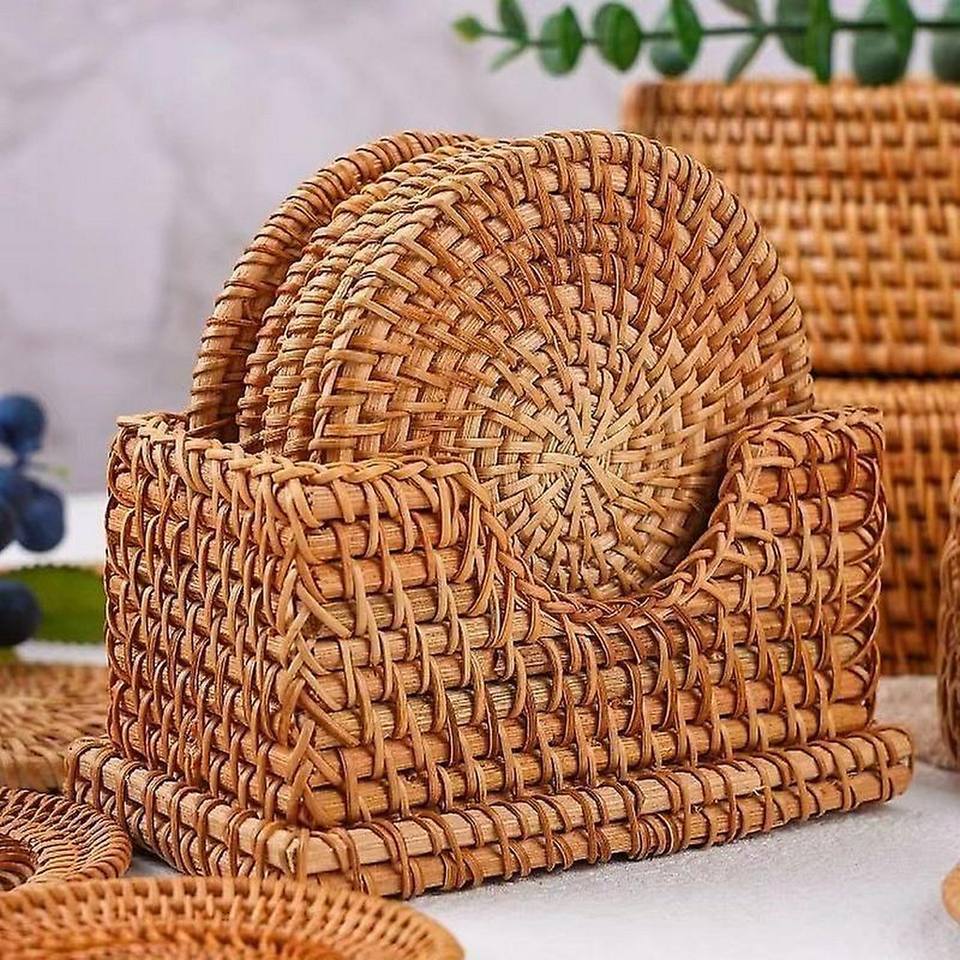 2024 Creative Wicker Tea Coaster 6 pièces Set accessoires de cuisine Sous-verres en osier Jute avec support design unique fait à la main