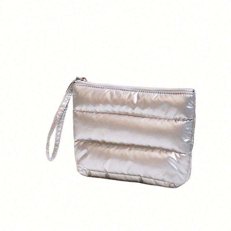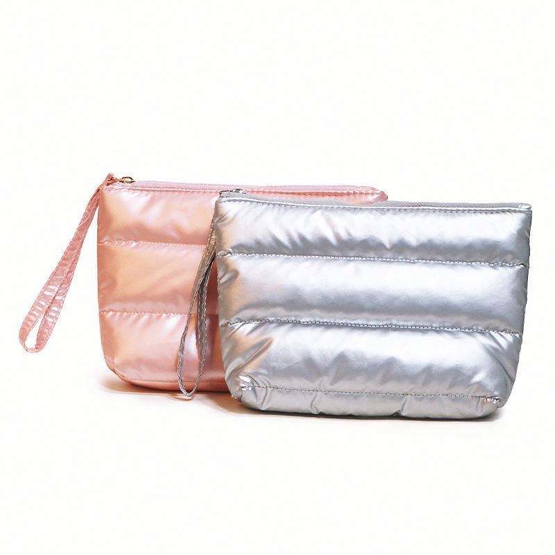 Sac de maquillage personnalisé avec logo 2024, en coton matelassé léger et doux, pour l'hiver, sac de voyage pour le maquillage