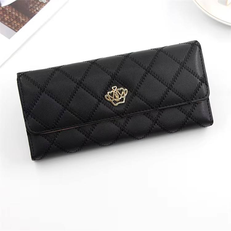 Portefeuille long simple à rabat en cuir souple à rayures personnalisé pour femme, grande capacité, doublure en polyester, collection 2024, vente chaude