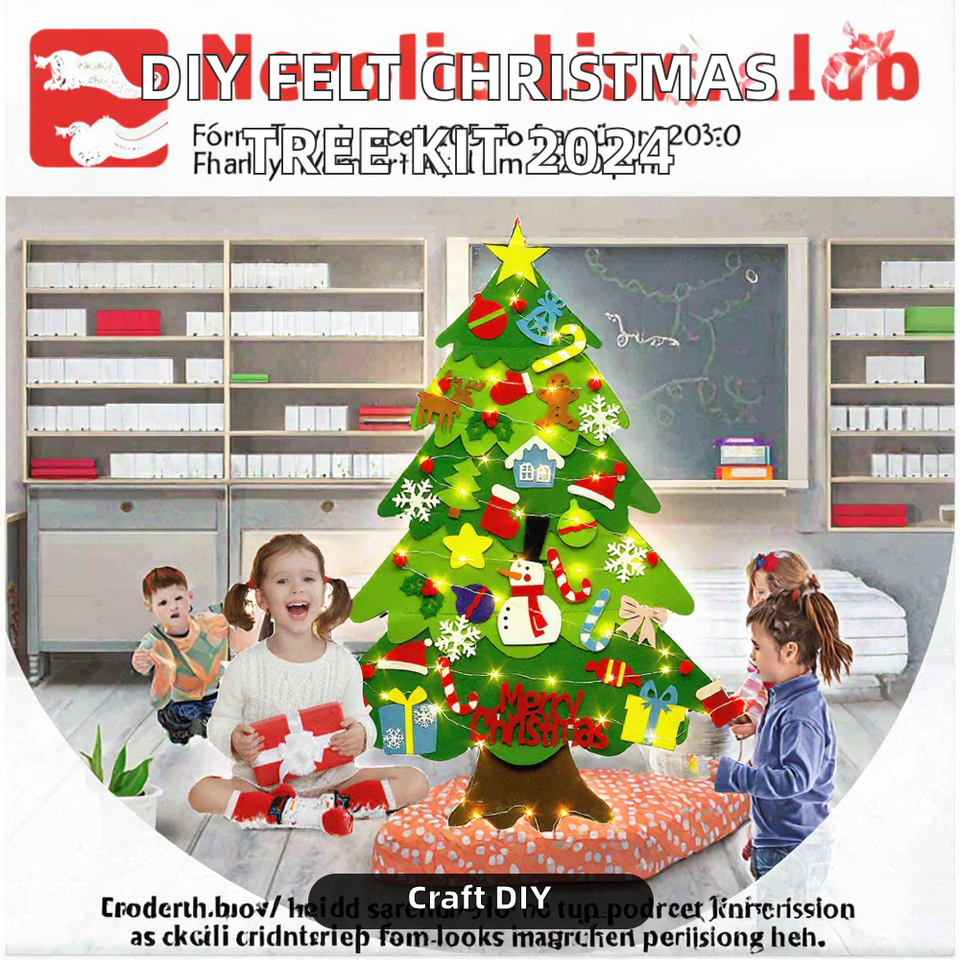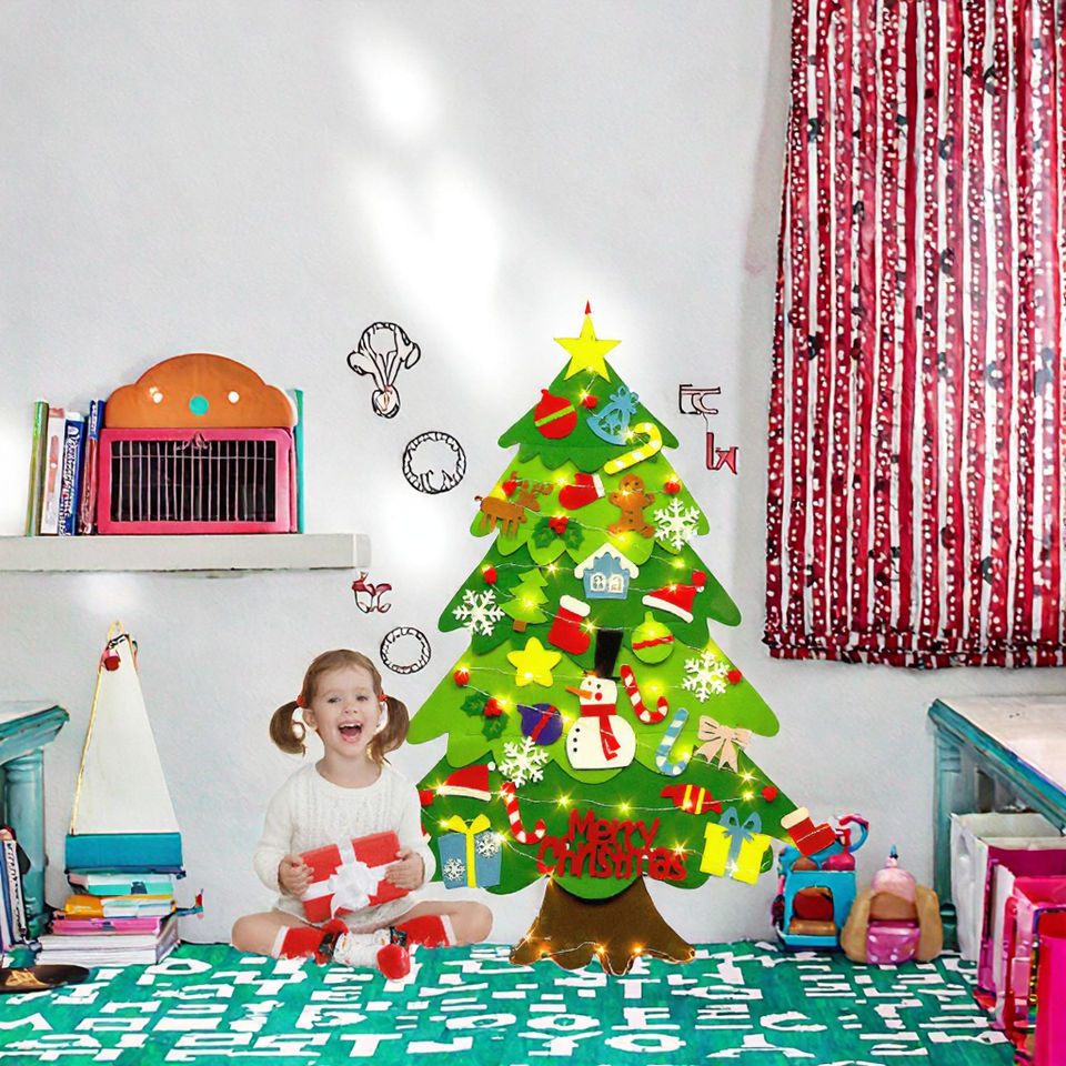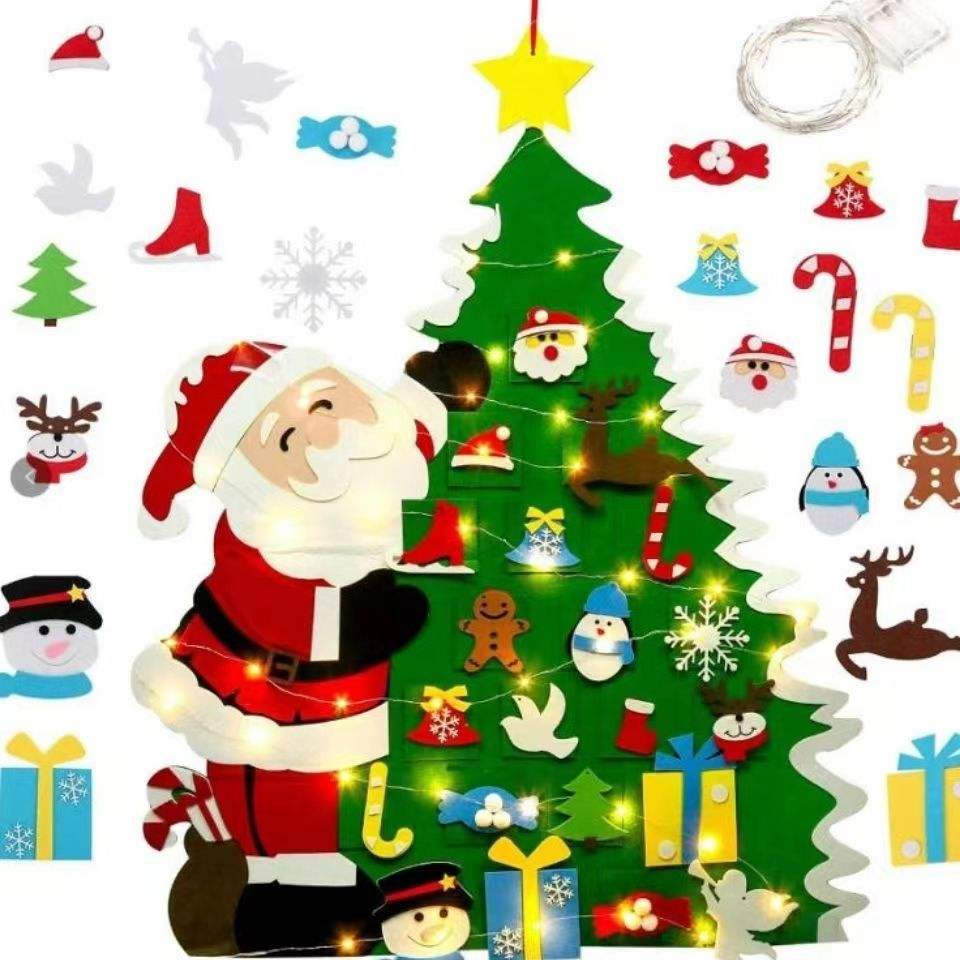 Ornement de Noël en feutre personnalisé à faire soi-même 2024, fait main, de haute qualité, avec lumières LED, fonctionne à piles, à fixer au mur, pour enfants