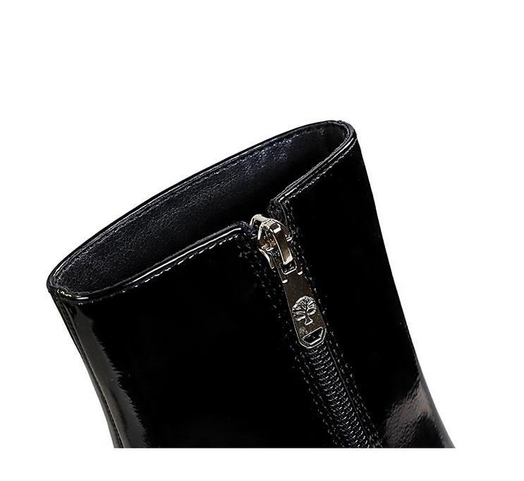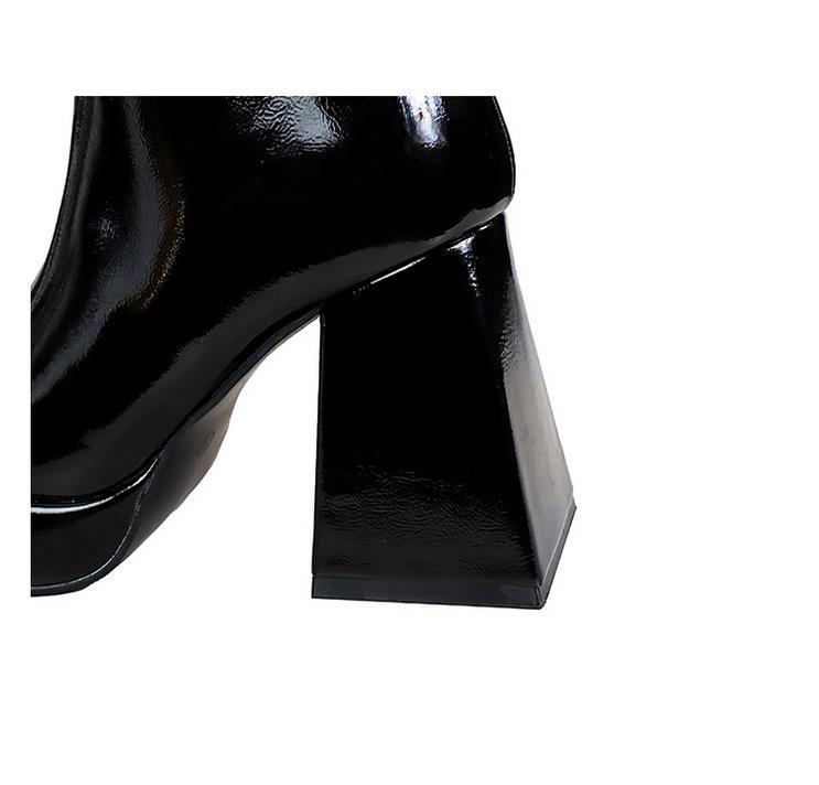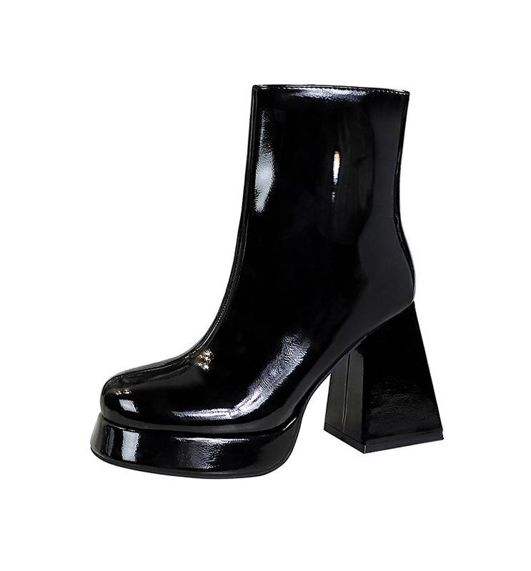 Chaussures à talons hauts épais à bout rond en cuir verni tendance 2024 pour femmes, bottines d'automne et d'hiver
